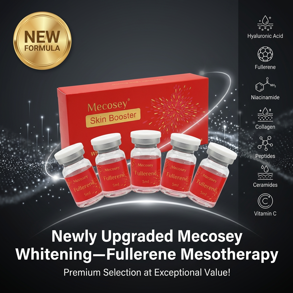 Mecosey Whitening-Fullerene is a high-performance ampoule system design for repairing and restoring damaged skin. It’s contain Fullerene and Vitamin C, affects for antioxidant, anti-aging, brightening, pore-refining, and soothing properties effectively combat photoaging, reduce wrinkles and dark spots, and enhance the skin’s protective barrier. The formula also includes Sodium Hyaluronate, Nicotinamide, Collagen, Peptide, Ceramide working together to Brightens and evens skin tone, hydrates and repairs, improves wrinkles and sagging, provides deep moisturization, soothes sensitive skin, protects against external irritants, and delays signs of aging.