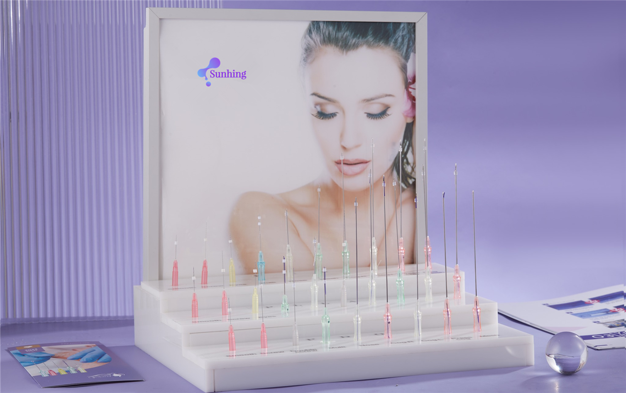 Sunhing PDO Thread is a premium lifting thread made of PDO (Polydioxanone), which is absorbed after stimulating collagen production and fibroblast activity. Everyone can experience overall face contouring and skin elasticity. It creates a natural, dramatic effect on the face and body with a simple, safe treatment. The superior quality of the Ultra Thin Wall Needle allows treatment to be straightforward, effective, and painless. The production process for the PDO Thread product line is automated, modern, and clean, resulting in state-of-the-art technology.